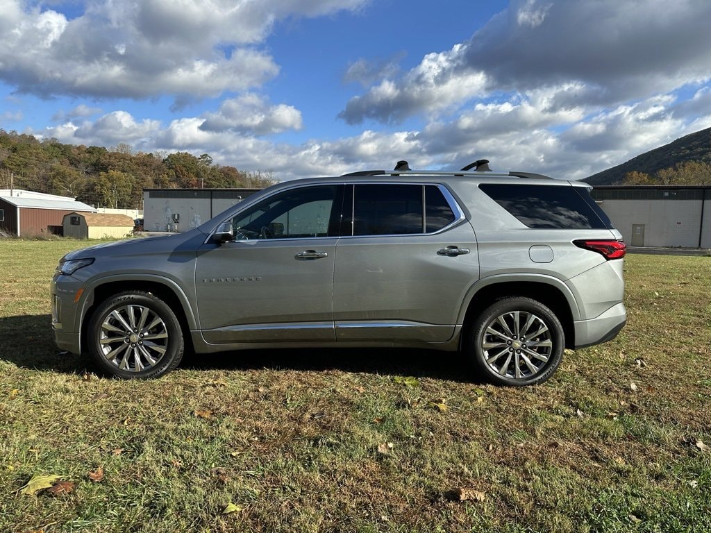 Sterling Gray Metallic 2023 Chevrolet Traverse Premier AWD 9-Speed Automatic 3.6L V6 SIDI VVT AWD, 10 Speakers, 3.49 Axle Ratio, 3rd row seats: split-bench, 4-Wheel Disc Brakes, 6-Way Power Front Passenger Seat, 8-Way Power Driver Seat Adjuster, ABS brakes, Air Conditioning, Alloy wheels, AM/FM radio: SiriusXM with 360L, Apple CarPlay/Android Auto, Auto High-beam Headlights, Auto-dimming door mirrors, Auto-dimming Rear-View mirror, Automatic temperature control, Black Roof Rack Cross Rails, Bose Premium 10-Speaker Audio System Feature, Brake assist, Bumpers: body-color, Compass, Delay-off headlights, Driver door bin, Driver vanity mirror, Dual front impact airbags, Dual front side impact airbags, Dual SkyScape 2-Panel Power Sunroof, Electronic Stability Control, Emergency communication system, Exterior Parking Camera Rear, Four wheel independent suspension, Front anti-roll bar, Front Bucket Seats, Front Center Armrest, Front dual zone A/C, Front License Plate Bracket Mounting Package, Front Passenger 2-Way Power Lumbar, Front reading lights, Fully automatic headlights, Garage door transmitter, Heated 2nd Row Outboard Position Seats, Heated door mirrors, Heated Driver & Front Passenger Seats, Heated front seats, Heated rear seats, Heated steering wheel, Illuminated entry, Leather steering wheel, Low tire pressure warning, Memory seat, Navigation System, Not Equipped w/Rear Park Assist (060), Occupant sensing airbag, Outside temperature display, Overhead airbag, Overhead console, Panic alarm, Passenger door bin, Passenger vanity mirror, Perforated Leather-Appointed Seat Trim, Power door mirrors, Power Driver Lumbar Control, Power driver seat, Power Liftgate, Power passenger seat, Power steering, Power windows, Preferred Equipment Group 1LZ, Premium audio system: Chevrolet Infotainment 3 Plus, Radio data system, Radio: Chevrolet Infotainment 3 Plus System w/Navi, Rear air conditioning, Rear anti-roll bar, Rear reading lights, Rear window defroster, Rear window wiper, Remote keyless entry, Security system, SiriusXM w/360L, Speed control, Speed-sensing steering, Spoiler, Steering wheel memory, Steering wheel mounted audio controls, Tachometer, Telescoping steering wheel, Tilt steering wheel, Traction control, Trip computer, Turn signal indicator mirrors, Variably intermittent wipers, Ventilated Driver & Front Passenger Seats, Ventilated front seats, Voltmeter, Wheels: 20 Metallic Machined-Face Aluminum.Recent Arrival!